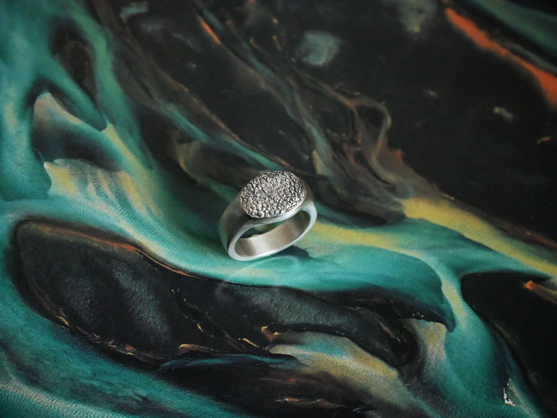 Chaque bijou est entièrement réalisé à la main, sculpté dans de la cire et transformé en métal grâce à la technique ancestrale de la fonte à cire perdue.